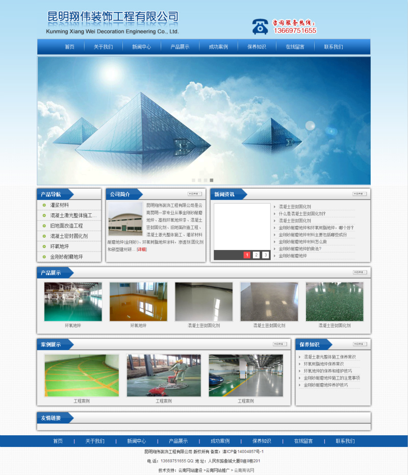 昆明翔偉裝飾工程有限公司是云南昆明一家專(zhuān)業(yè)從事金剛砂耐磨地坪、高檔環(huán)氧地坪漆、混凝土密封固化劑、舊地面改造工程、混凝土激光整體施工、灌漿材料耐磨地坪(金剛砂)、環(huán)氧樹(shù)脂地坪涂料,滲透劑 固化劑和新型建材研發(fā)、生產(chǎn)銷(xiāo)售和施工與一體的企業(yè),是目前國(guó)內(nèi)行業(yè)具有領(lǐng)先水平的生產(chǎn)制造企業(yè)。