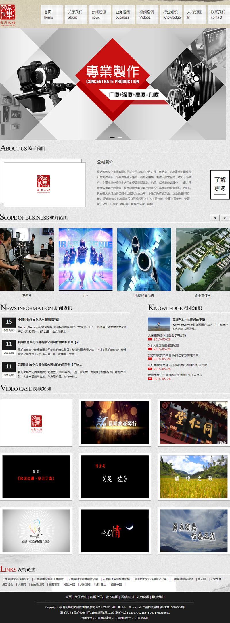 昆明彰彰文化傳播有限公司視頻服務(wù)業(yè)務(wù)主要包括:企事業(yè)宣傳片、專(zhuān)題片、MV、紀(jì)錄片、微電影、影視廣告片、電視欄目包裝、晚會(huì)、聚會(huì)等制作服務(wù)。