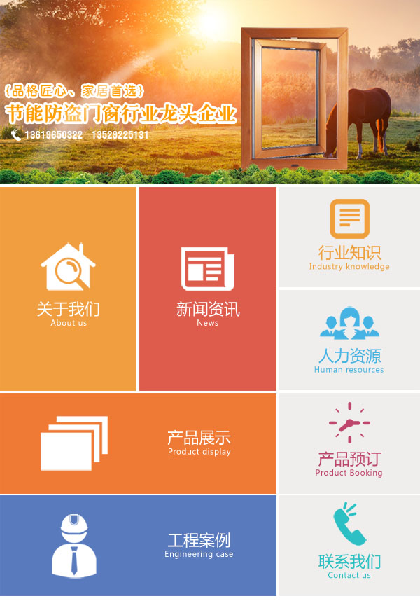 公司從事門窗制作銷售已達10余年時間,我公司所有的產(chǎn)品接受定制化生產(chǎn)服務。從產(chǎn)品的形狀、材料的選用,客戶都可以根據(jù)自身的需要打造不一樣的門窗產(chǎn)品。公司成立至今各類工程案例總計達千余個工程以上,我們的產(chǎn)品質優(yōu)價廉。有需要的朋友可以隨時與我公司聯(lián)系。聯(lián)系電話:13619650322 13529225131